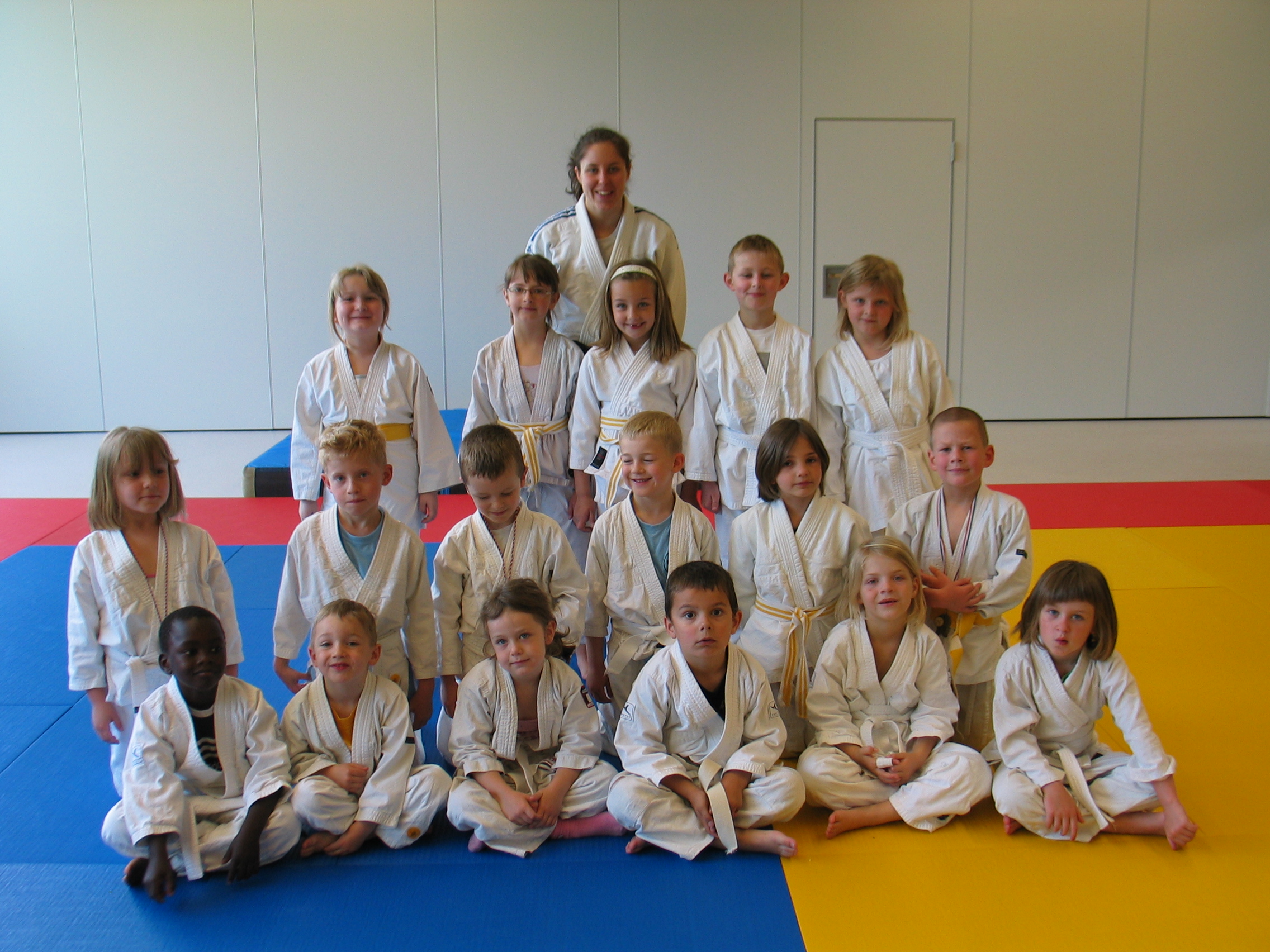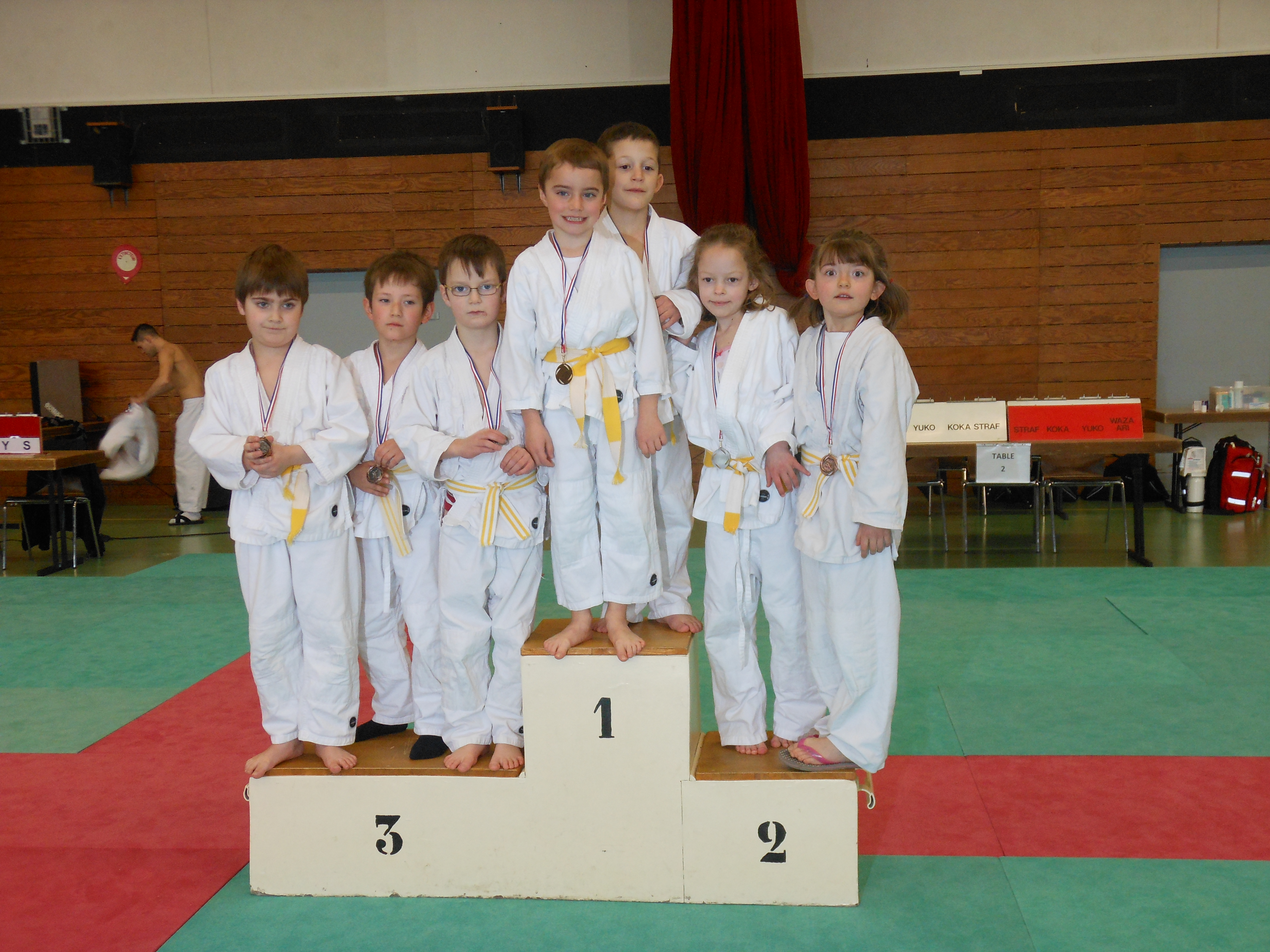 Alors que les benjamins combattent déjà, les benjamines passent à l’échauffement (sous la houlette d’Aline Vivé Stoltz)